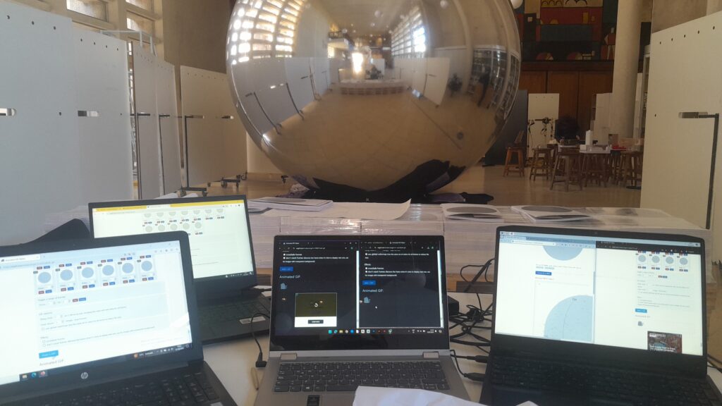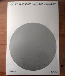 ESCULTURA DE DATOS, fue el sobrenombre elegido para bautizar el rol con el que acompañé la publicación y exposición 0,10,100,1000,10000, ATLAS DE PROYECTOS 2023, organizada por el Departamento de Proyectos de Arquitectura y Urbanismo (FADU, Uruguay). Bajo la curaduría de @federicolagomarsino, desarrollamos la visualización y puesta en escena de la «cruda producción» del DePAU durante el año 2023. Cada punto en la esfera es una actividad, geolocalizada, cualificada y puesta en valor en la publicación ATLAS. El análisis de la distribución de estos puntos, sirve para hacer un mapa (siempre incompleto) de la situación departamental. En el desarrollo de su producción, el valor de la distancia se convirtió en un gran espejo en el que reflejar las capacidades y principales debates desde la academia.