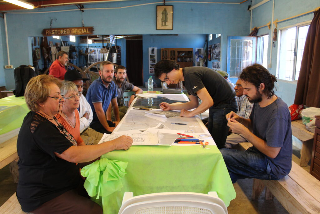 En palabras de sus propias comisiones, la Universidad de la República define la extensión universitaria como un conjunto de actividades de colaboración de actores universitarios con otros actores que, en procesos interactivos donde cada actor aporta sus saberes y todos aprenden, contribuyen a la creación cultural y al uso socialmente valioso del conocimiento, con prioridad a los sectores más postergados (CDC, 2011). En el ámbito de entrepasillos sin embargo, se suele empaquetar esta definición con la sinécdoque de que la extensión consiste en la investigación crítica aplicada en territorio. Sirva esta anécdota sobre el uso del término espacial por el todo, para poner sobre la mesa el riesgo que estos proyectos igualmente tienen de caer en las prácticas tan reproducidas del colonialismo académico. Tampoco nosotros nos íbamos a librar de estos errores, era cuestión de estar dispuestos a escucharlos.