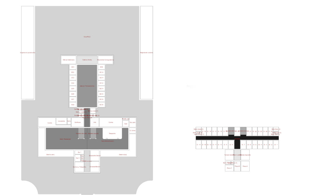 En la escala barrial (media) trabajamos un área que incluía el predio de La Tablada Nacional y los barrios circundantes. La Tablada Nacional fue el principal mercado de carne bovina de la República Oriental del Uruguay. Se creó a finales del s. XIX por presión de la oligarquía rural, en paralelo al alambrado del país y a la apropiación de tierras de los grandes estancieros (Marín y Tomasini, 2019). En 1973 la Tablada Nacional fue clausurada por decreto gubernamental dentro de los objetivos de las Medidas Prontas Económicas que pretendían la instauración de una liberación del mercado de exportación ganadera. A partir de este momento, el edificio quedó dispuesto para el operativo que fuese necesario.