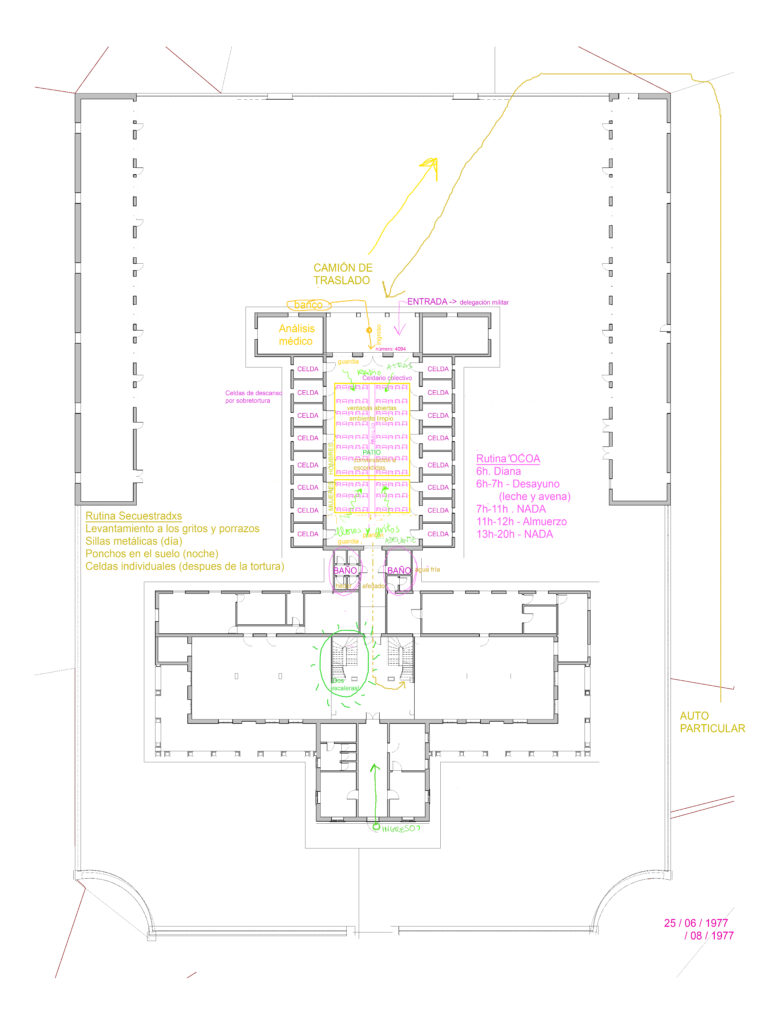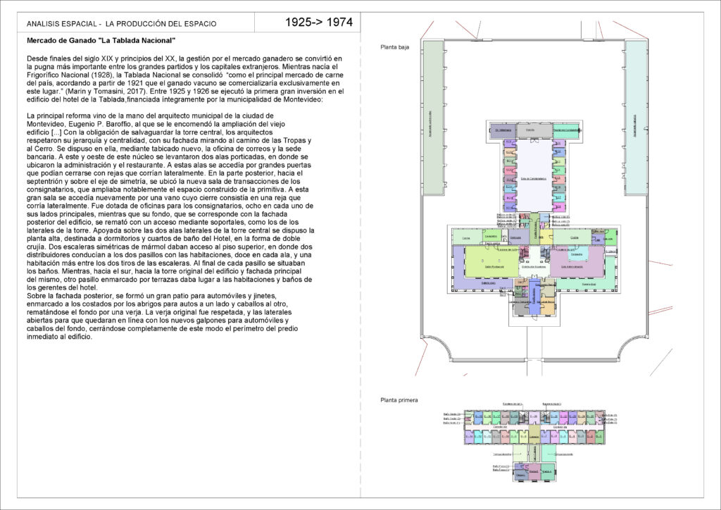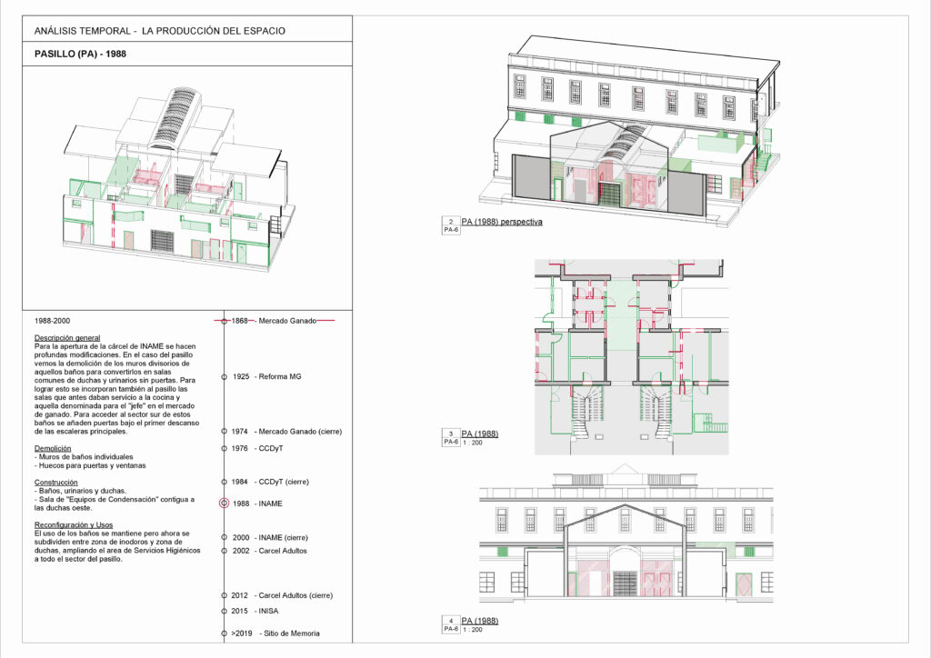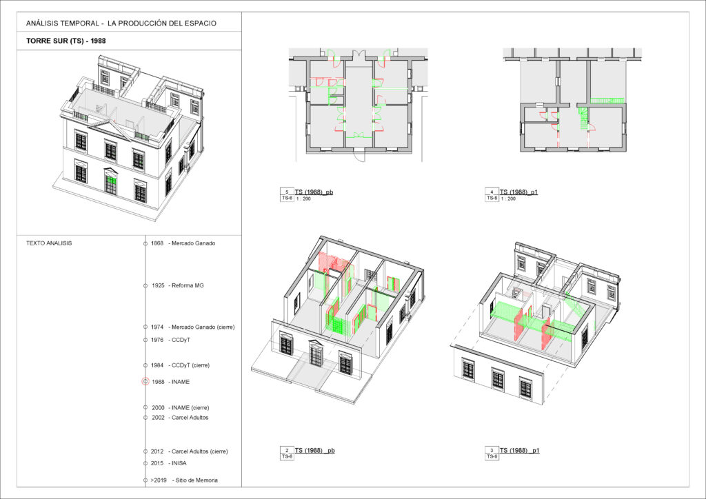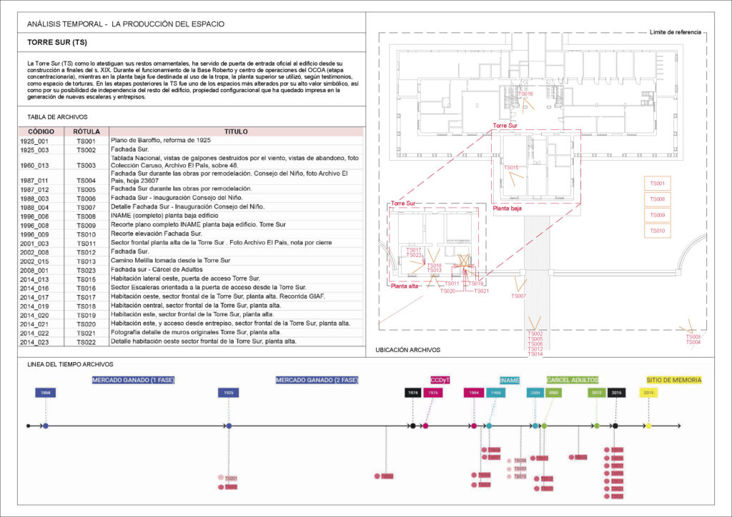 En el caso uruguayo, desde la aprobación en 2018 de la ley N° 19.641 de declaración y creación de Sitios de Memoria Histórica del Pasado Reciente, se ha iniciado un proceso de demanda por la “recuperación” (Feld, 2011) sobre los denominados sitios “auténticos” (Robin, 2014). Este es el caso del ex Centro Clandestino de Detención y Tortura «Base Roberto», instalado sobre un antiguo mercado de ganado de 64 ha, que en 2019 fue declarado como Sitio de Memoria, y actualmente se encuentra en proceso de refuncionalización por parte de su comisión, integrada por familiares de víctimas, sobrevivientes, vecinas y vecinos, y miembros de la comunidad universitaria. En la siguiente ponencia abordaremos algunas herramientas de la praxis arquitectónica desarrollada en este lugar, a partir del trazado de las intersecciones entre la espacialización del testimonio, las relaciones materiales, y las propuestas a futuro de los actores involucrados. Desde una perspectiva interdisciplinaria, se han podido trazar vínculos y contradicciones entre el espacio material e imaginado, así como hipótesis sobre la cotidianidad represiva, resultantes de la interpretación de los análisis de configuración espacial y mapas axiales (Hillier y Hanson, 1984). Estas técnicas de representación y subjetivación del espacio, por sus capacidades interpretativas y expresivas, han servido también como regla mnemotécnica para el testimonio (Weizman, 2019), así como modelo de territorialización programática colectiva, en forma de Plan Maestro “dialógico” o “en semilla” (Sennet, 2006), y que hoy sirve como hoja de ruta para la construcción del sitio de memoria.